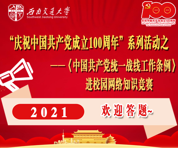 为庆祝中国共产党成立100周年,深入学习贯彻《中国共产党统一战线工作条例》(以下简称《条例》)精神,4月6日-18日,学校组织开展了“庆祝中国共产党成立100周年”系列活动之——《条例》进校园知识竞赛。