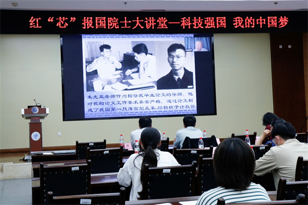 陈院士还激动地给大家讲述了核弹和汉字信息化的辉煌成就让中国再次屹立于世界大国之林的科技强国梦。中华人民共和国成立之初,面对当时国家经济困难,科技基础薄弱,一大批科学家与参与研制工作的干部、工人,依靠报效祖国、自主创新的献身精神,用较少的投入在较短的时间内实现了原子弹、氢弹和人造卫星等尖端技术的突破,这些精神让在场的师生感动不已,更让大家深刻意识到国家的强大是个人赢得国际尊重的坚强保障!