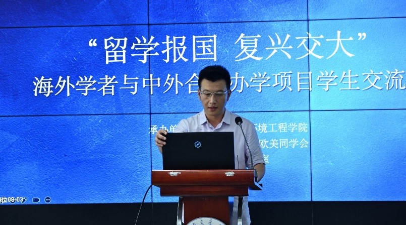 为了深入学习贯彻落实习近平总书记给南京大学留学归国青年学者的重要回信精神,5月31日下午,由地球科学与环境工程学院、学校欧美同学会、归国留学人员“维清励行工作室”共同举办的“留学报国 复兴交大”归国留学人员分享会在犀浦校区举行。此次活动邀请了战略与学科处处长、学校欧美同学会副会长邱延峻教授,土木工程学院副院长、学校欧美同学会副会长陈嵘教授,电气工程学院、学校欧美同学会副会长黄德青教授,地球科学与环境工程学院赵锐教授作为嘉宾,向学生们分享自己的爱国之情、强国之志、报国之行。