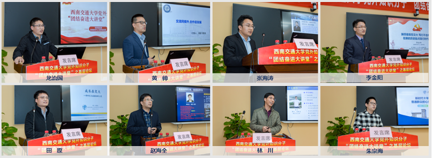 论坛上,来自教学科研一线的青年党外教师依次走上讲台,进行自我展示和成果分享。民盟盟员、计算机与人工智能学院龙治国,民进会员、生命科学与工程学院黄帅,致公党党员、材料科学与工程学院张海涛,九三学社社员、材料科学与工程学院李金阳和生命科学与工程学院田原,无党派人士、电气工程学院赵海全,以及党外知识分子、电气工程学院林川和计算机与人工智能学院朱宗海,纷纷围绕“学习贯彻二十大·同心启航新征程”主题作了发言。
