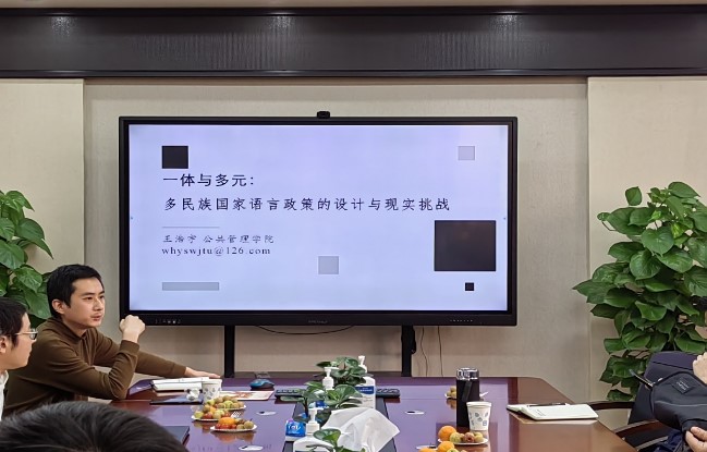 民盟盟员、王思琦副教授以“公共管理研究的想象力”为题作分享,提出在研究中如何处理西方理论和中国故事之间的关系很重要,尤其是理论怎样对话、机制如何通约的问题,并就如何通过中国式方式讲好中国故事同与会成员进行了深入交流研讨。致公党党员、王浩宇副研究员以“一体与多元——多民族国家语言政策的设计与现实挑战”为主题,从跨学科视角对语言问题进行了深入剖析,提出了语言首先是一种交流工具、其次是一种创新资源、最后是一种权利的观点,阐述了传承弘扬以语言文字为载体的中华优秀文化的重要意义,等等。