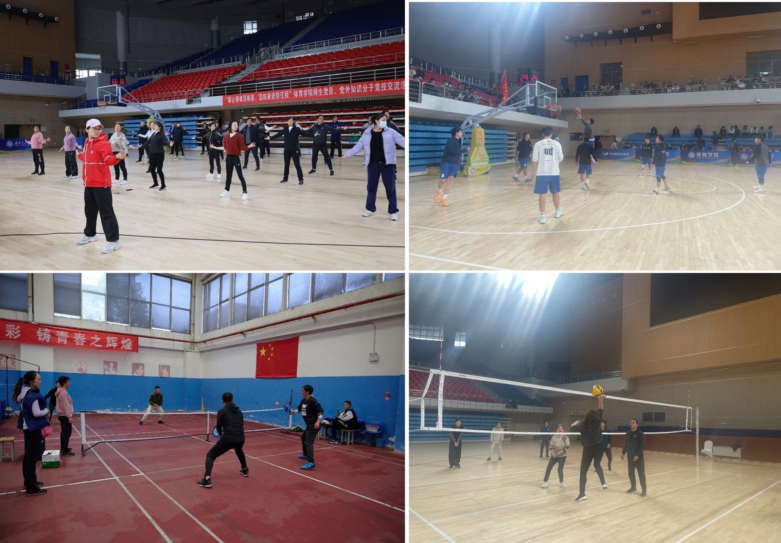 11月30日下午,学院举行了包括党外知识分子在内的学院师生体育竞技活动。活动设有篮球、网球、匹克球等项目,赛前还进行了八段锦和太极拳等热身活动。比赛中,大家团结互助、配合默契、奋勇争先,充分展示了良好的心理素质和意志毅力,彰显了党外知识分子与学院党委同心同向同行的良好风貌。