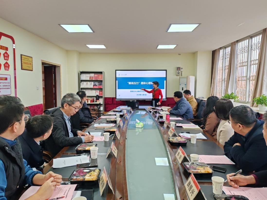 会后,陈华教授带领大家进行了团体心理辅导活动和个性化心理测评,帮助大家释放压力,关注自己的心理健康,提高心理自我调适能力。