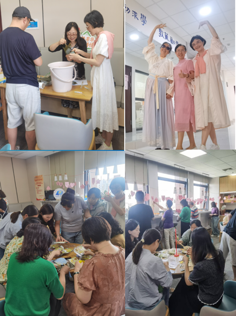 2025年,学院借端午、国庆等节日之机,开展端午文化体验、乒乓球比赛等活动,以增强归国留学教师的归属感与爱校荣校之情。端午节活动现场,教师们踊跃参与包粽子、做香囊、制漆扇、套圈圈、穿汉服及知识竞答等活动,既丰富了归国留学青年教师的文体生活,为教职工搭建了锻炼身体、展示自我的平台,又让大家在繁忙的教学科研之余,有效舒缓压力,增强锻炼意识,提升团队凝聚力。