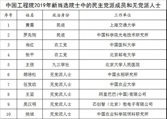 原标题:【权威发布】全名单!这些民主党派成员和无党派人士新当选两院院士!