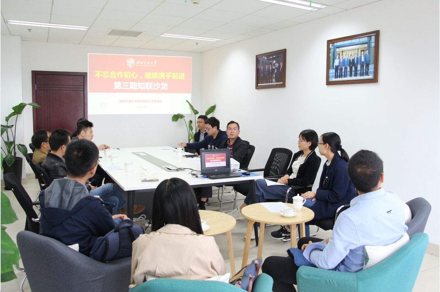 2019年10月15日中午,“不忘合作初心,继续携手前进”——学校第三期知联沙龙在犀浦校区综合楼501举行。党委统战部副部长任黎立,国家“青拔”、党外知识分子联谊会会长袁林果出席沙龙。学校知联会其他班子成员以及新入职的党外知识分子代表等近20人参加活动。