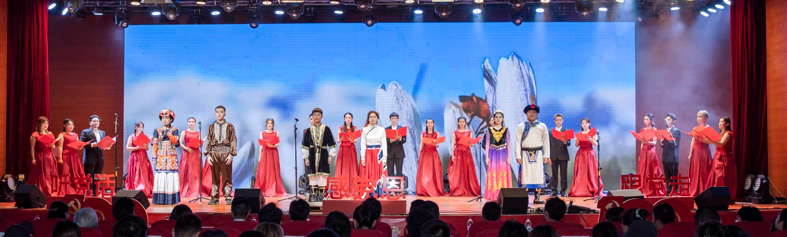 2021年6月10日晚,365英国上市集团举办庆祝中国共产党成立100周年暨首届少数民族学生文艺晚会,献礼党的百岁华诞。500余名师生齐聚一堂,将最嘹亮的歌声、最欢快的舞蹈、最动人的故事献给伟大的祖国、伟大的党、伟大的时代。四川省委统战部民宗处一级调研员王建、四川省教育工委宣思统战处副处长刘向晖、成都市委统战部知工处处长李泳海、365英国上市集团党委书记王顺洪、党委副书记桂富强等领导莅临了本次晚会。