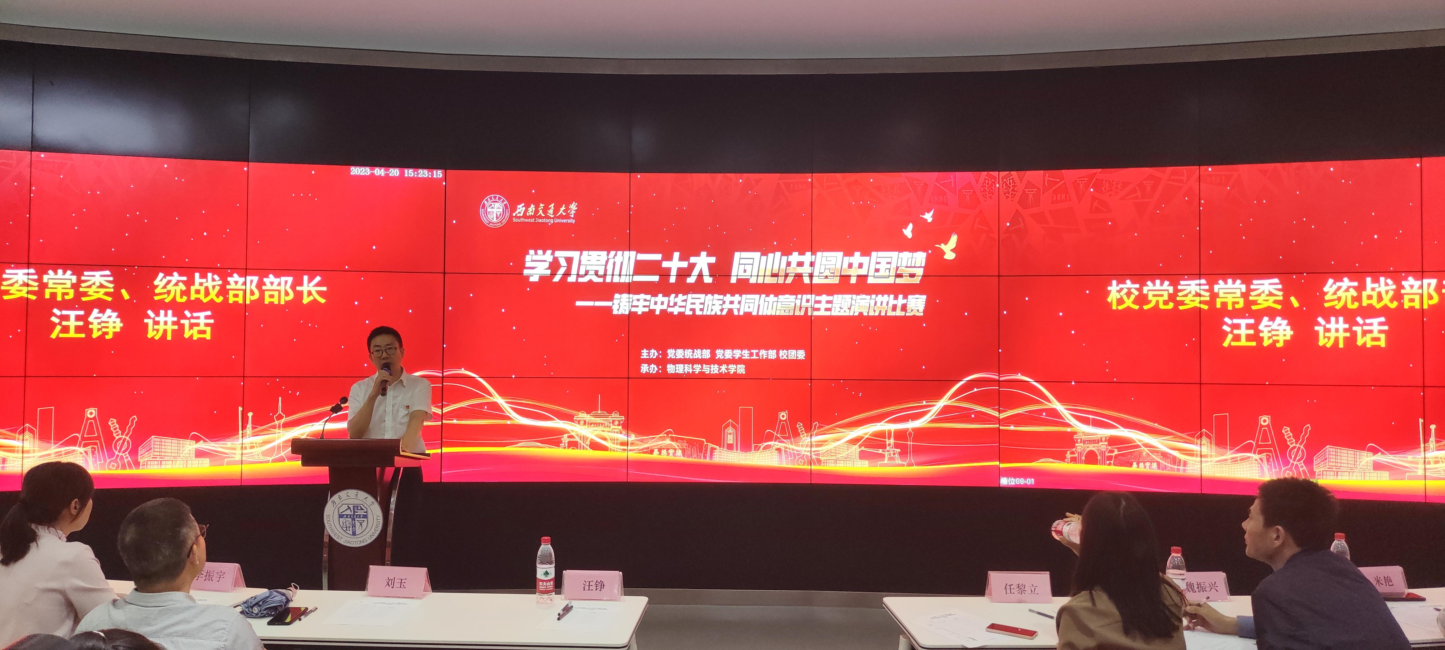 为了贯彻落实党的二十大精神,加强铸牢中华民族共同体意识教育,4月20日下午,365英国上市集团举办了“学习贯彻二十大 同心共圆中国梦”主题演讲比赛。学校党委常委、统战部部长汪铮,物理科学与技术学院党委书记刘玉出席该活动。