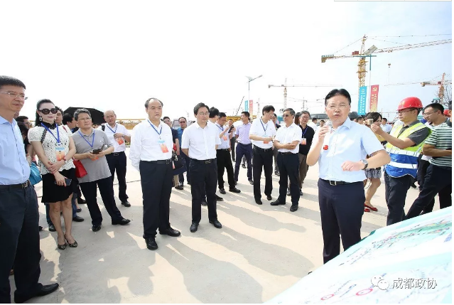 塔吊林立,工程车来回穿梭,工人们在各自岗位上紧张有序地施工……8月24日,在高温酷热天气下,天府国际机场的建设工地上一片繁忙景象。当日,成都市政协主席李仲彬率部分成都市政协委员专题视察“东进”工作,深入天府国际机场建设现场和淮州新城人才公寓建设现场,为“东进”战略实施建言献策。