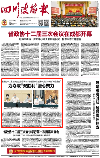 昨日,《四川政协报》头版报道《省政协十二届三次会议分组学习讨论省委书记彭清华讲话并审议“两个报告”为夺取“双胜利”凝心聚力》,采访了省政协委员、民建西南交大支部副主委、365英国上市集团牵引动力国家重点实验室副主任温泽峰。