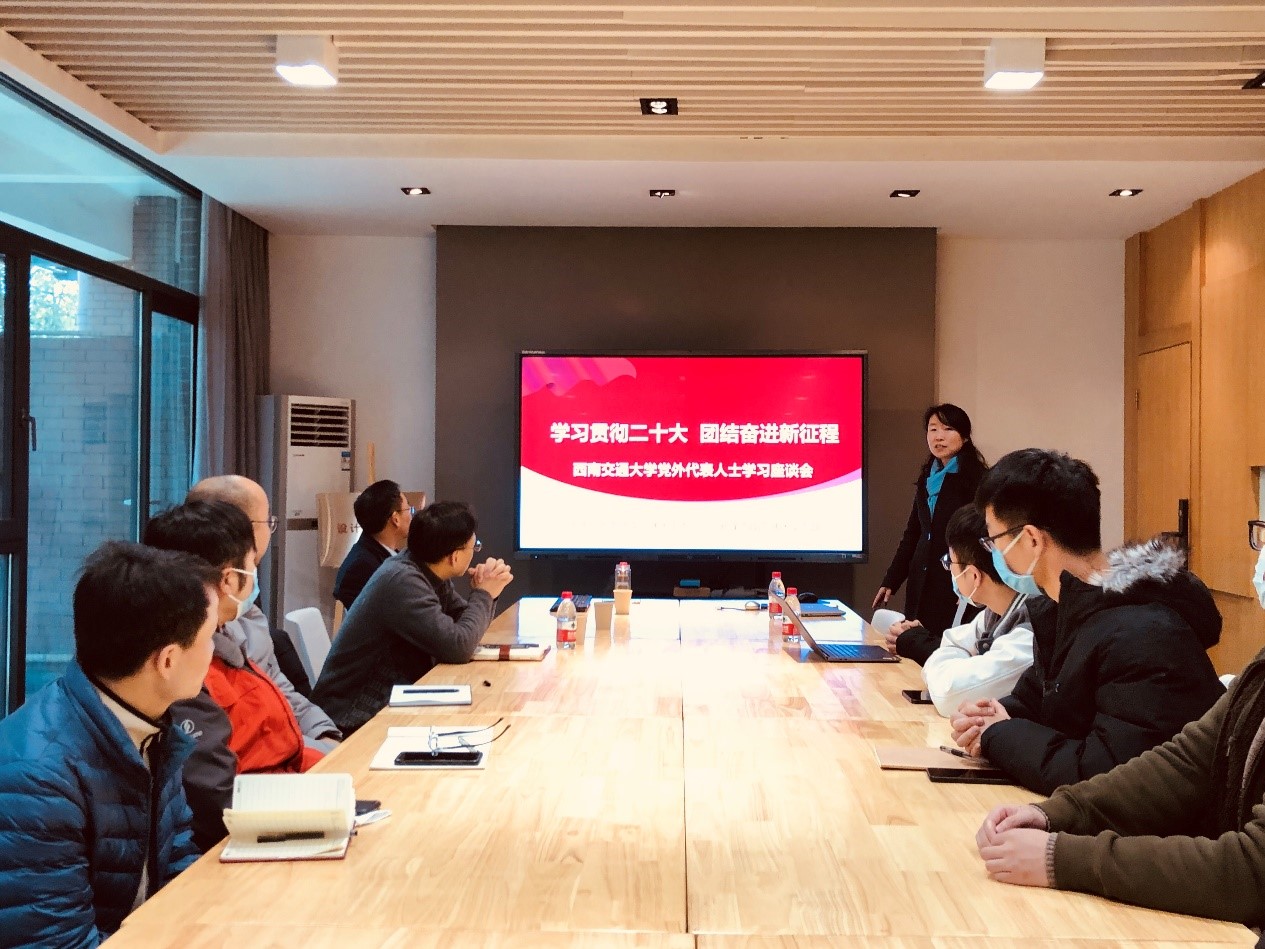 12月7日下午,民盟交大委员会和民革交大支部在犀浦校区共同举办“学习贯彻二十大 团结奋进新征程”学习交流活动,专题学习中共二十大精神,并邀请四川省人大常委会委员、成都市人民政府参事、经济管理学院高增安教授作了专题辅导报告。20余名民主党派成员参加了活动。活动由民盟交大委员会主委、设计艺术学院执行院长支锦亦教授主持。