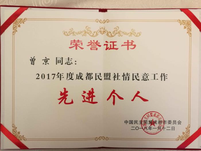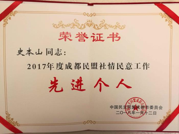 在1月12日召开的民盟成都市委会十四届三次全委(扩大)会议上,民盟成都市委会对先进基层组织和先进个人进行了评选表彰。我校民盟荣获“2017年度成都民盟参政议政工作先进集体”称号,盟员史本山、曾京同志荣获“2017年度成都民盟社情民意工作先进个人”称号。