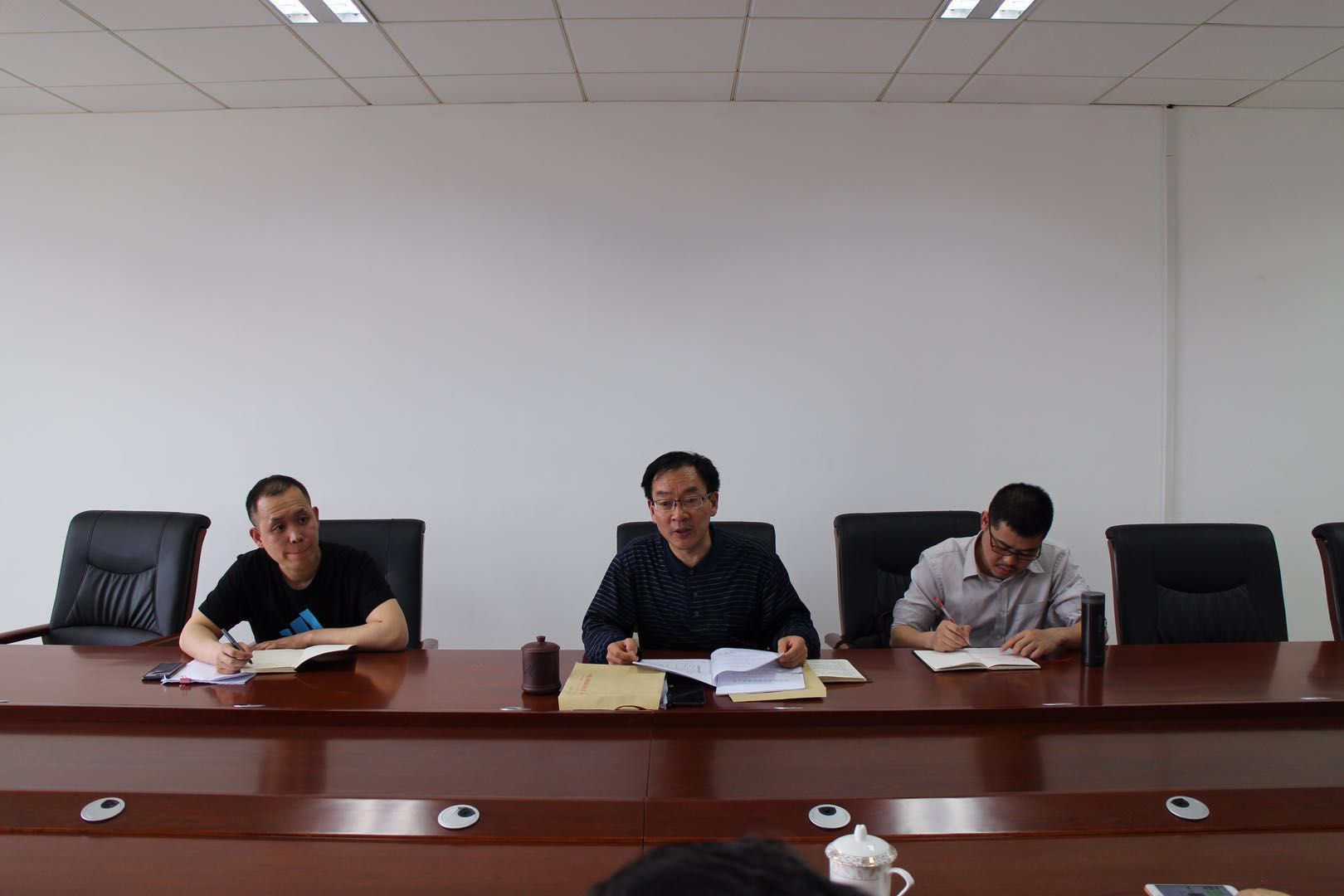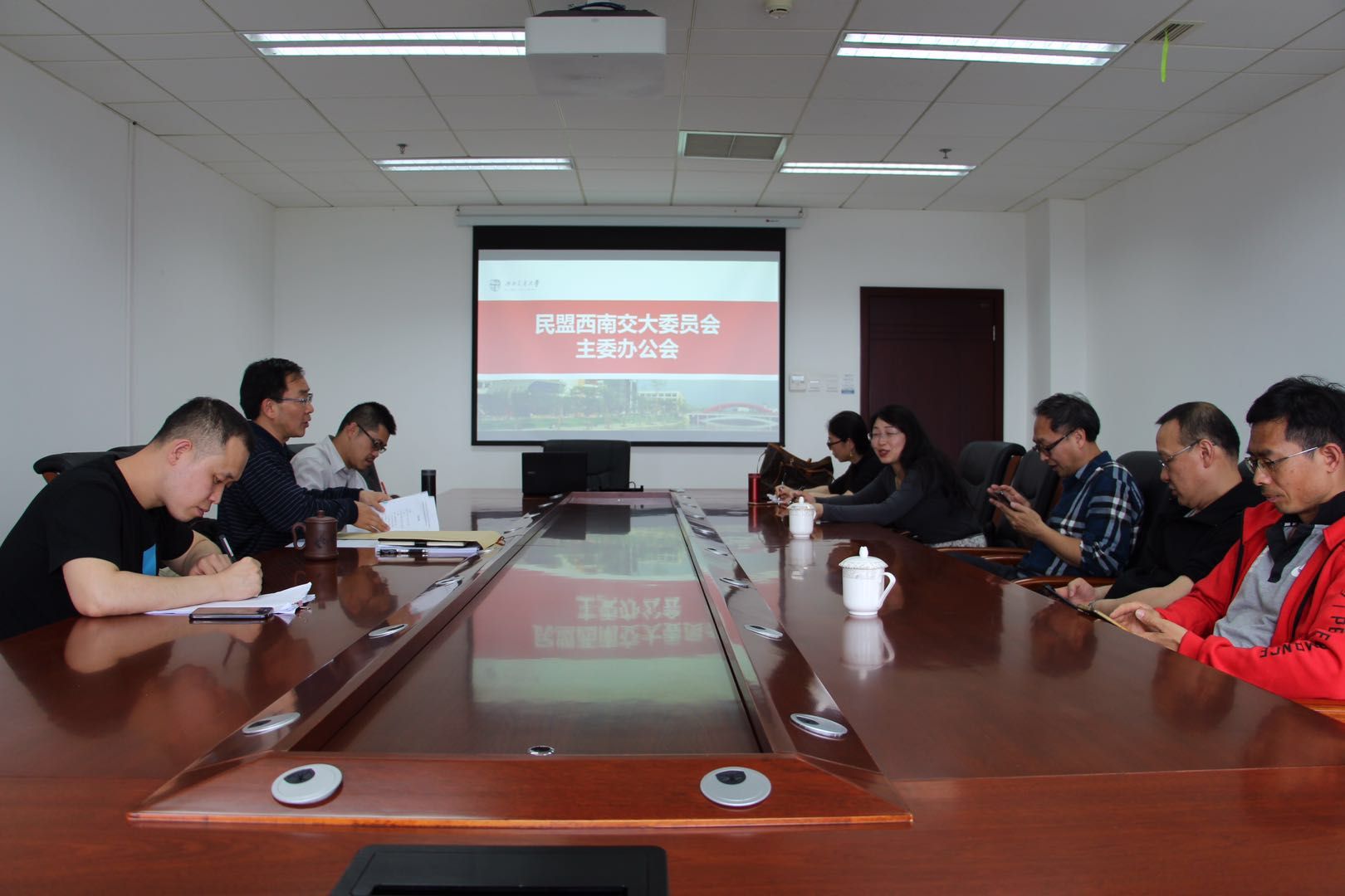 2019年4月19日,民盟西南交大委员会在犀浦校区综合楼505会议室召开主委办公会,传达近期上级有关文件精神,酝酿换届相关事宜,研讨新学期工作。学校民盟主委高增安,副主委陈辉、陈天星、申瑢,委员张国松、张丽梅、孟华、李里等参加了会议。